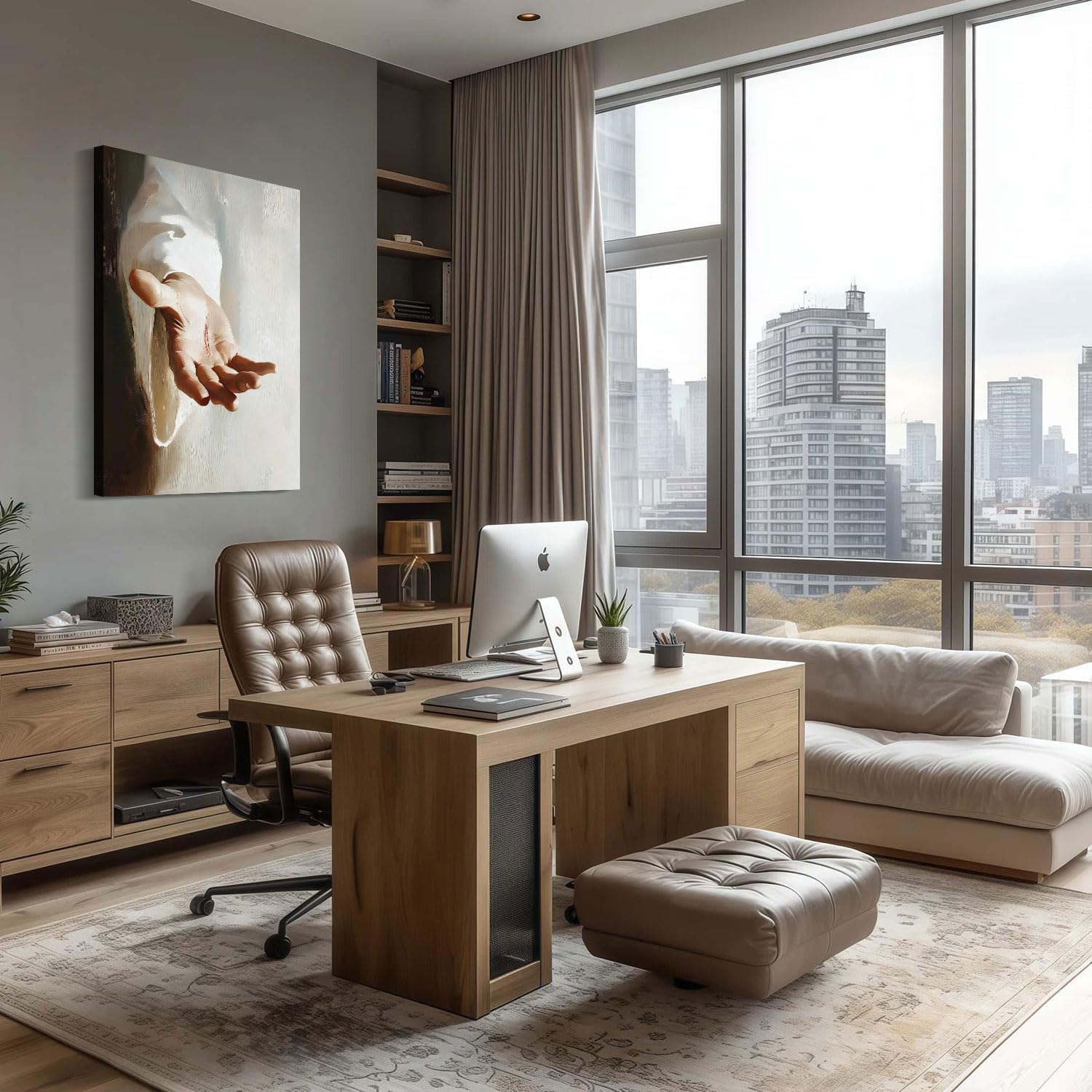 - Religious and Inspirational Art The image of Jesus’ hand, symbolizing compassion, love, and guidance, brings a profound spiritual depth to your home or office. This artwork is perfect for anyone who wants to express their faith and devotion through beautiful art.
