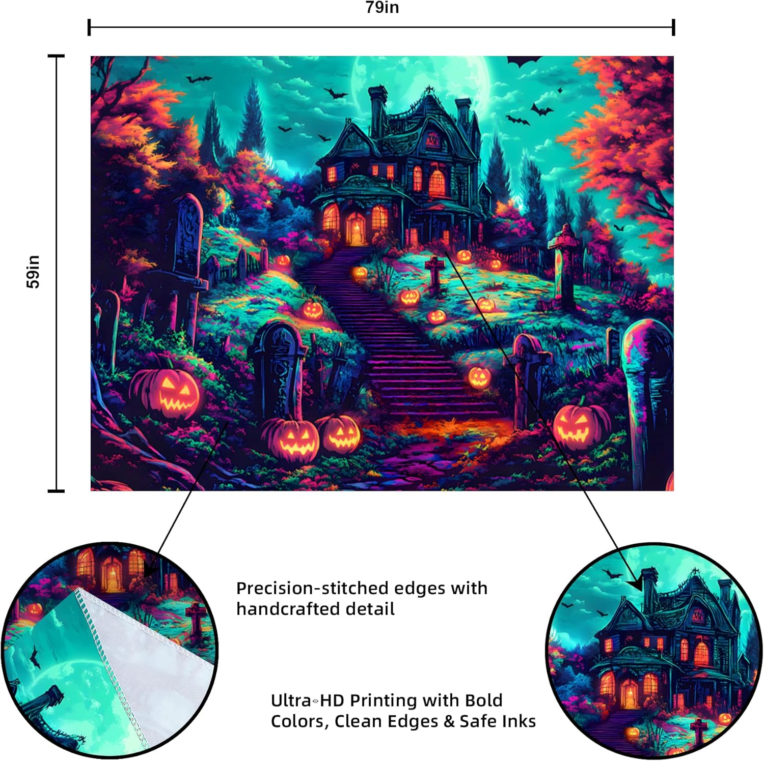 - 【Blacklight Tapestry】Designed for blacklight events, the intricate Halloween art on this blacklight tapestry pops with color in the dark.