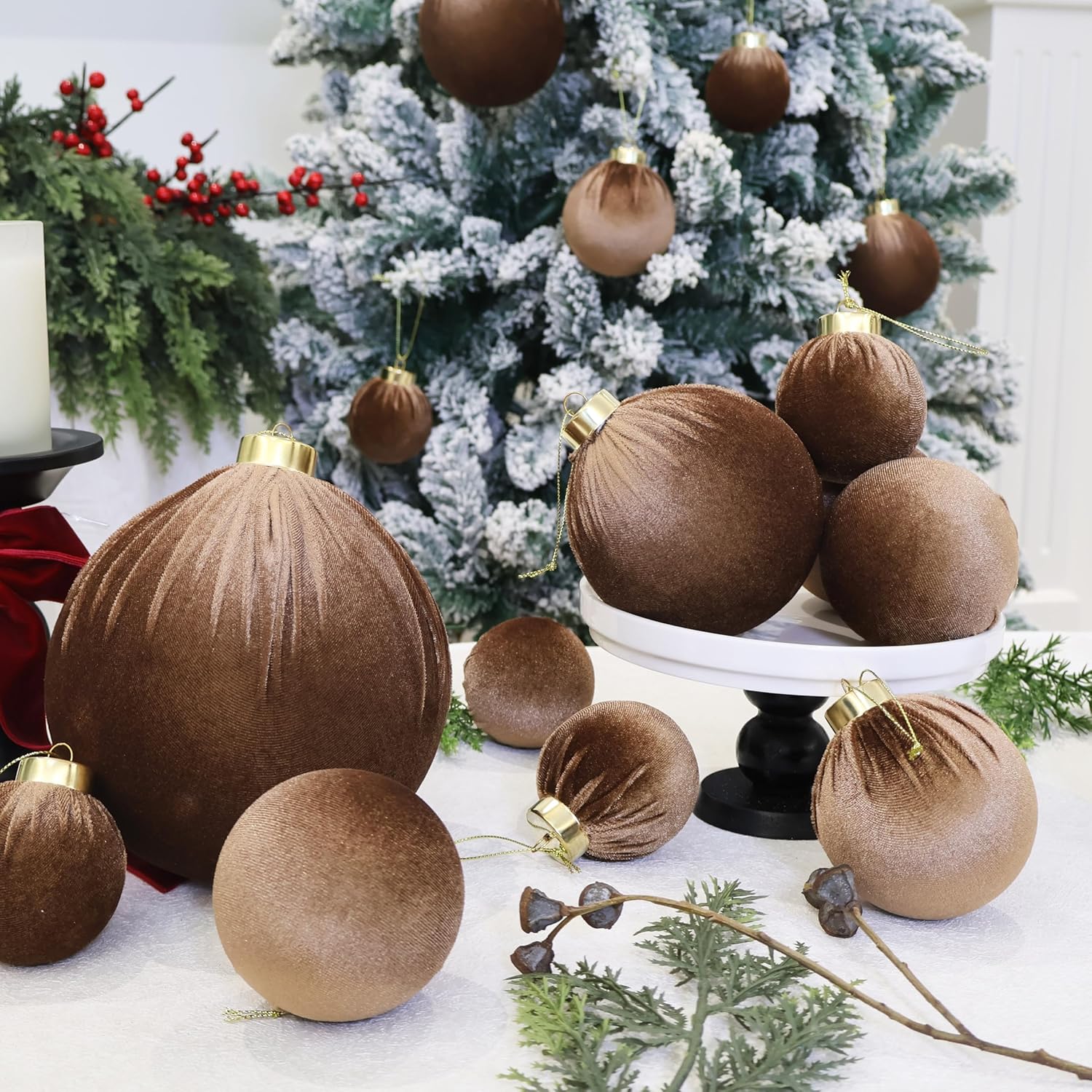 6inch Big Velvet Christmas Ornaments, 2pcs Flocked Ornaments Balls Sets for Christmas Tree Decorations Light Coffee