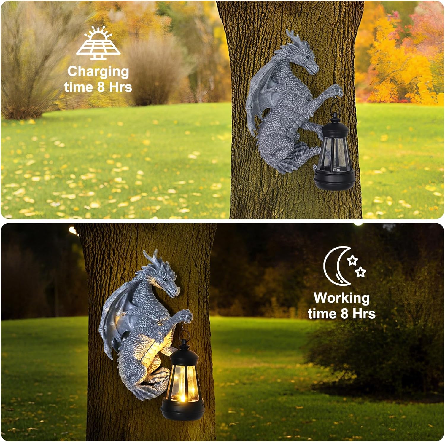 Garden Statues Tree Hugger Dragon - Halloween Dragon Statue Solar Lights Outdoor Patio Wall Decor,Christmas& Mothers Day&Birthday Gifts for Grandma Mom Women,Ideas Arts Crafts Waterproof Resin Lantern