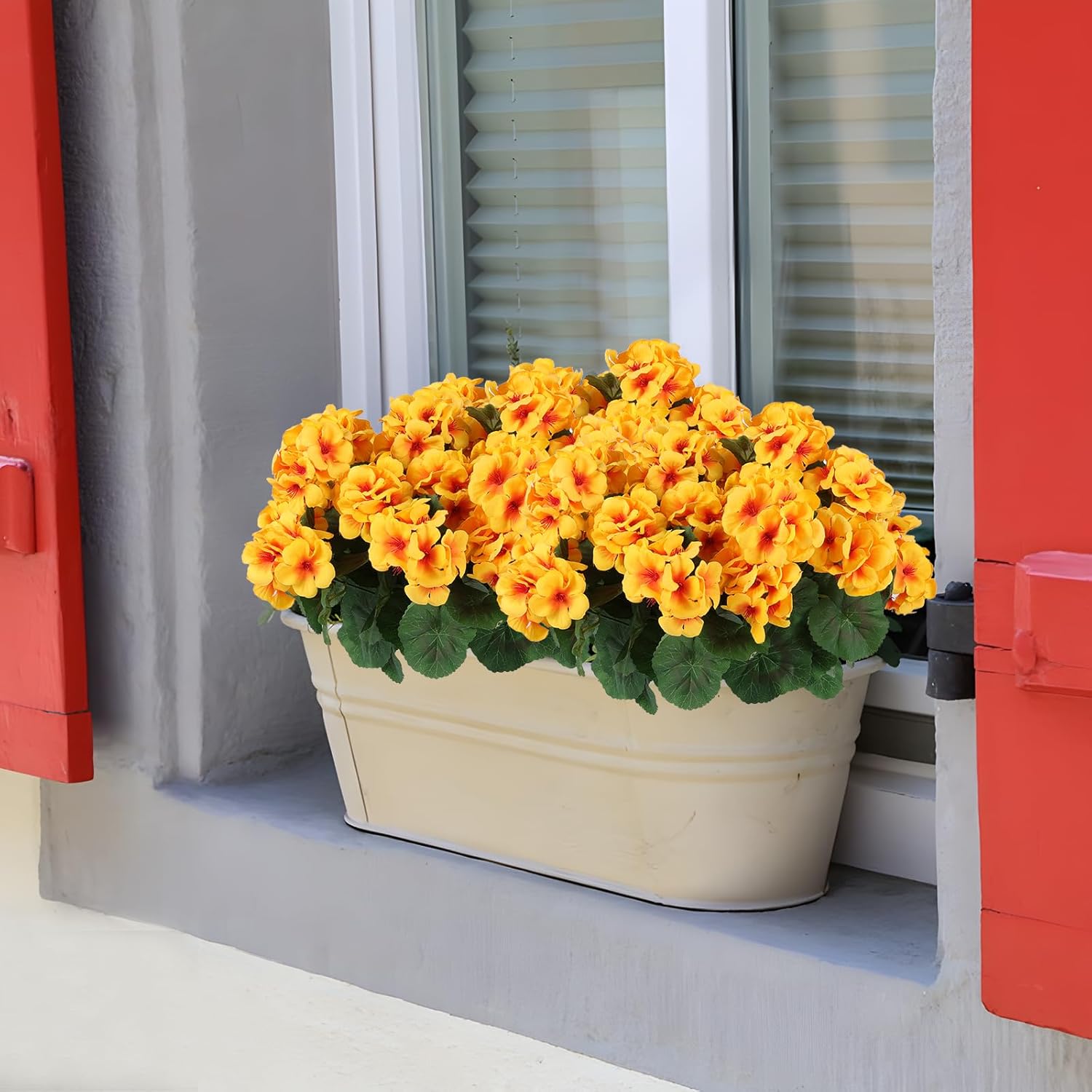 Hananona 12 Pcs Artificial Geranium Flowers for Outdoors Geranium Silk Yellow Flowers Outdoor UV Resistant Garden Plants Faux Fall Flower for Home Kitchen Table Centerpieces Decor (12, Yellow)