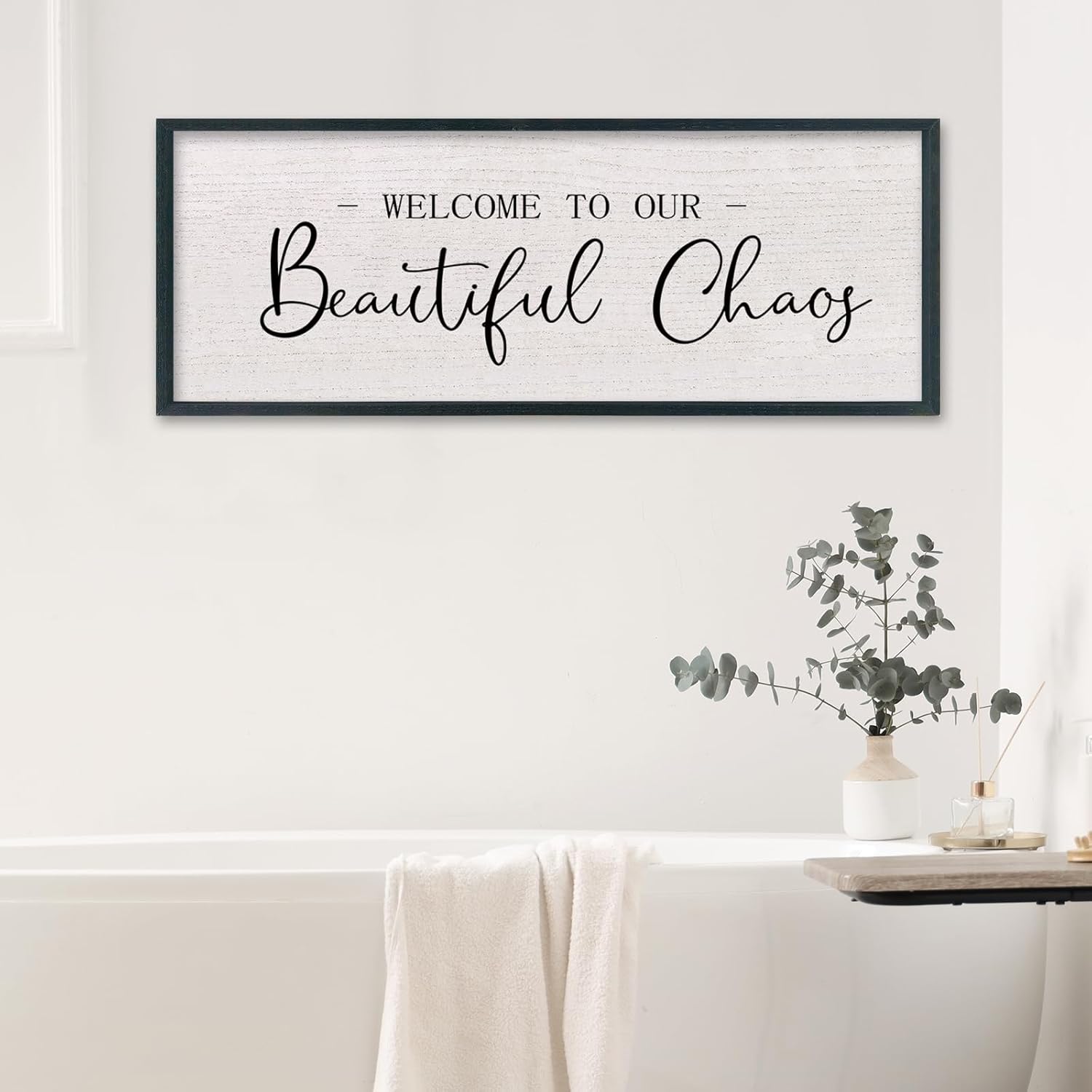 comurdyo Welcome To Our Beautiful Chaos Wall Decor Art 32"X12" for Home Entryway Sign Large Wood Framed Wall Hanging (Black)