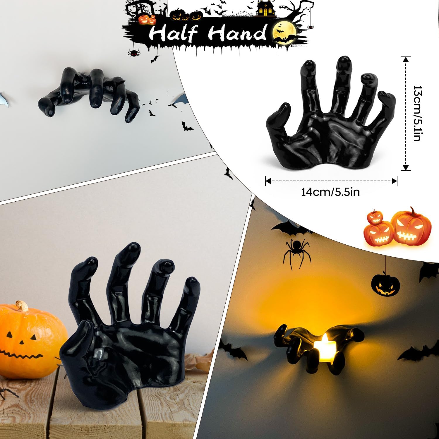 Halloween Decor Indoor, 4 Packs Creepy Reaching Hands with LED Candles, Life-Sized Gothic Wall Decor for Horror Decor, Spooky Halloween Decorations for Home, Party, Goth & Dark Academia Style