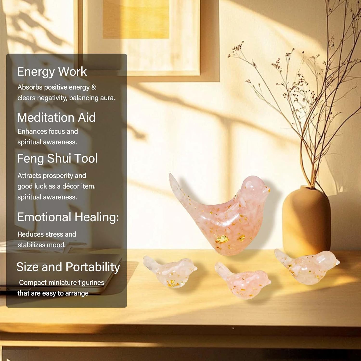 Crystal Bird Figurines, Resin Animal Statues, Miniature Decorative Gravel Birds, Home Decor (4PCS-RoseQuartz)
