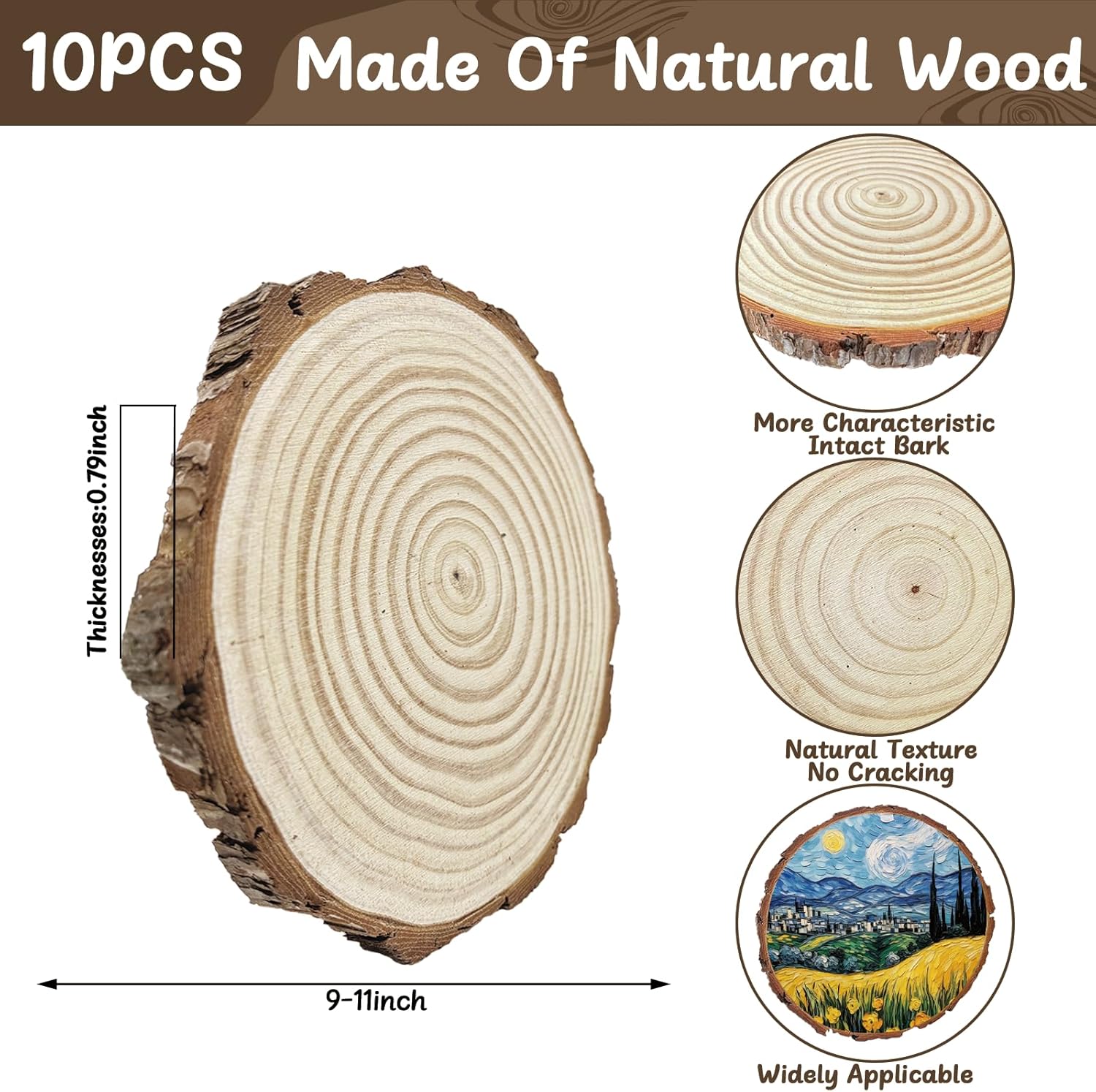 10 Pcs 9-11 Inch Unfinished Wood Slices for Centerpieces,Natural Wood Rounds for Crafts Rustic Wedding and Table Decorations,Wooden Discs with Tree Bark,Ideal for Crafts,Painting,and Holiday Decor