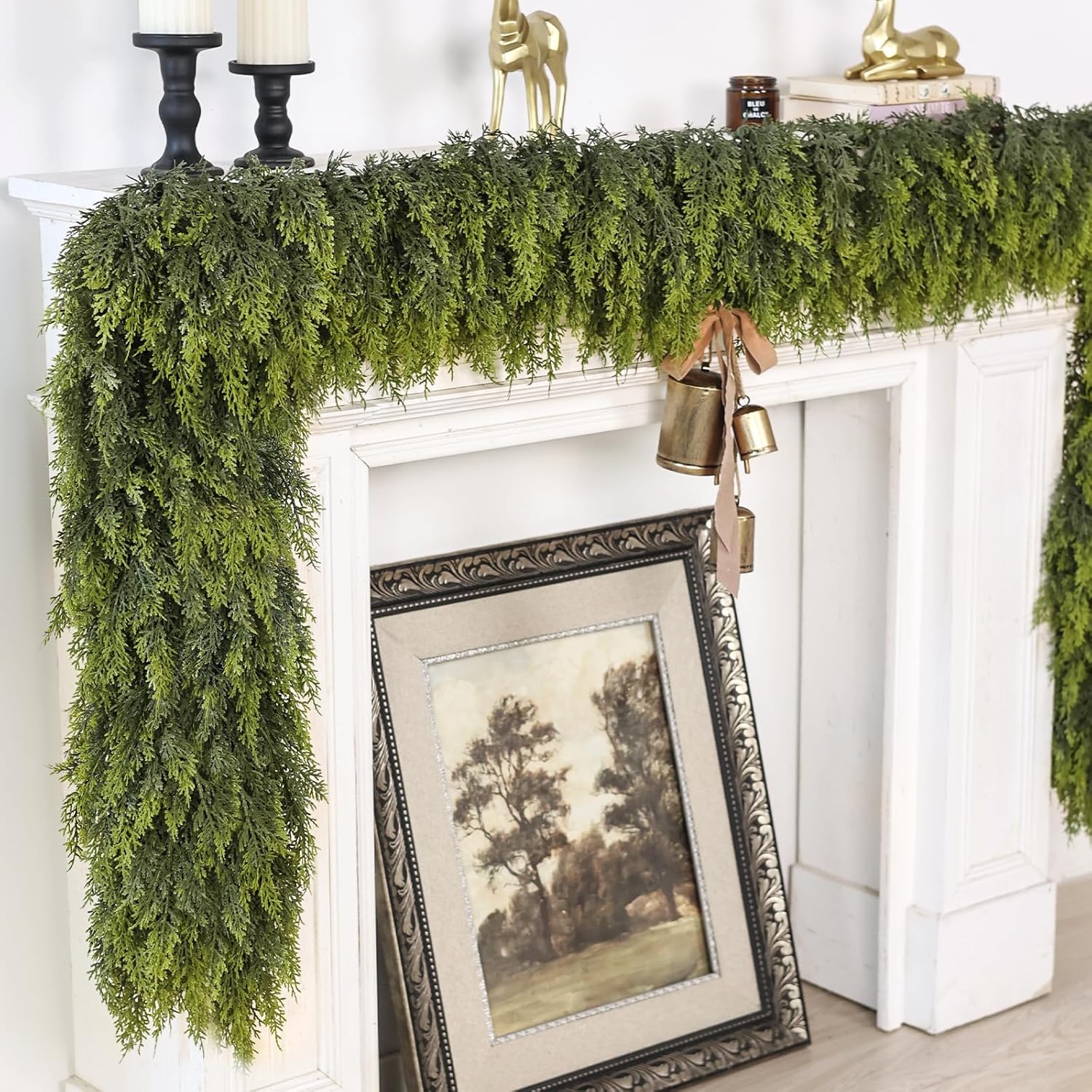 - [Quantity and Size]:The package includes 2 piece of artificial cedar garland, approximately 5 feet in length, which is perfect for decorating fireplace.