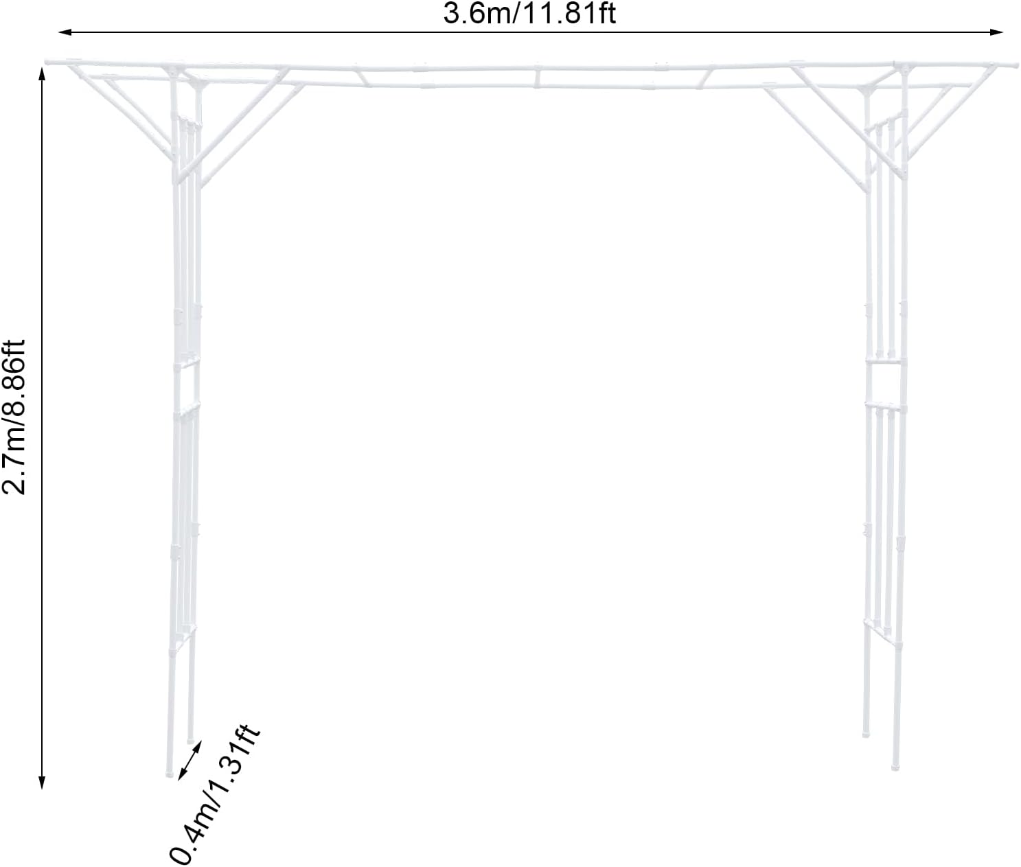 Garden Trellis for Climbing Plants,Outdoor Garden Arch Arbor Trellis,Steel Garden Trellis Wedding Arches for Ceremony Decoration 11.81x1.31x8.86ft (White)