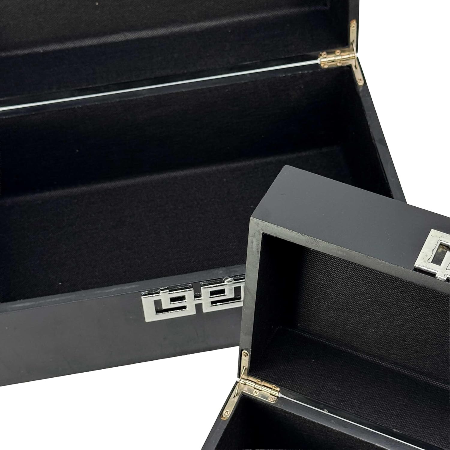 Galt International Storage Box Set Decorative Storage Box w/Hinged Lid Classic Design Wood Decor Boxes with Geometric Clasp Storage for Bedroom & Home - Set of 2 (Black & Silver)
