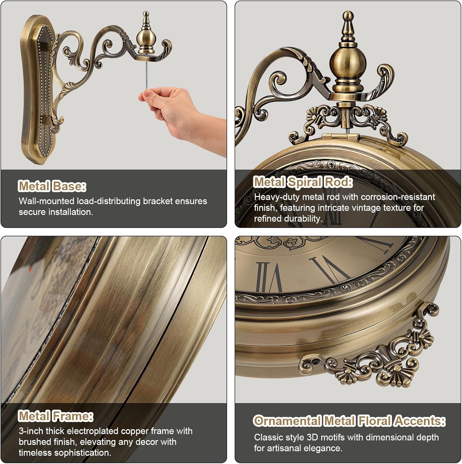 - โ๏ธ [Premium All-Metal & Glass Construction] Experience unmatched durability and sophistication. Meticulously crafted from solid metal and glass, this wall clock features a robust bronze frame enhanced by a hand-polished, brushed copper plating finish. The glass-covered faces protect the elegant dials, ensuring this antique clock remains a timeless piece of functional art.