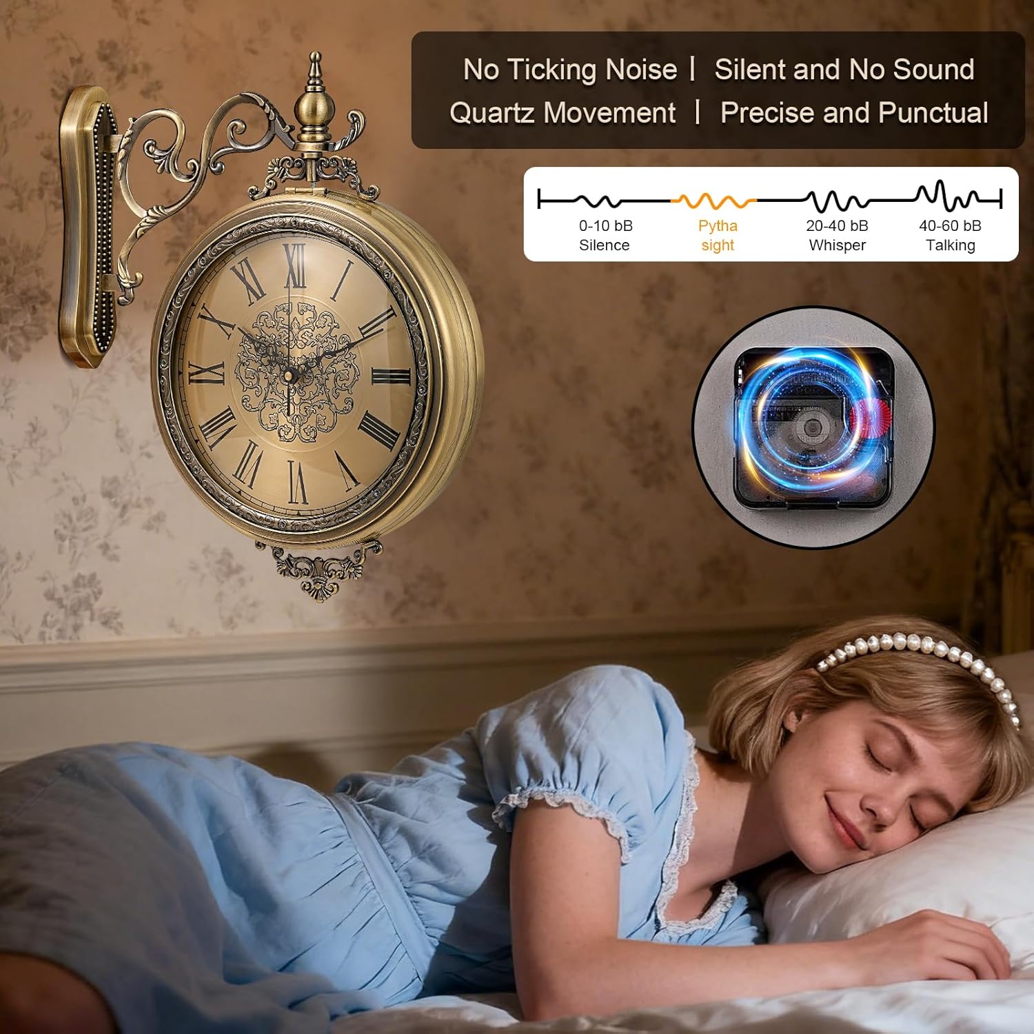 - ๐ฏ [Double-Sided Vintage Design with Roman & Arabic Numerals] Admire classic elegance from any viewpoint. Our unique double sided wall clock displays sophisticated Roman numerals on one side and clear Arabic numerals on the other. This antique stationary design offers dual visibility in a stunning vintage package, making it a captivating hanging clock for your space.