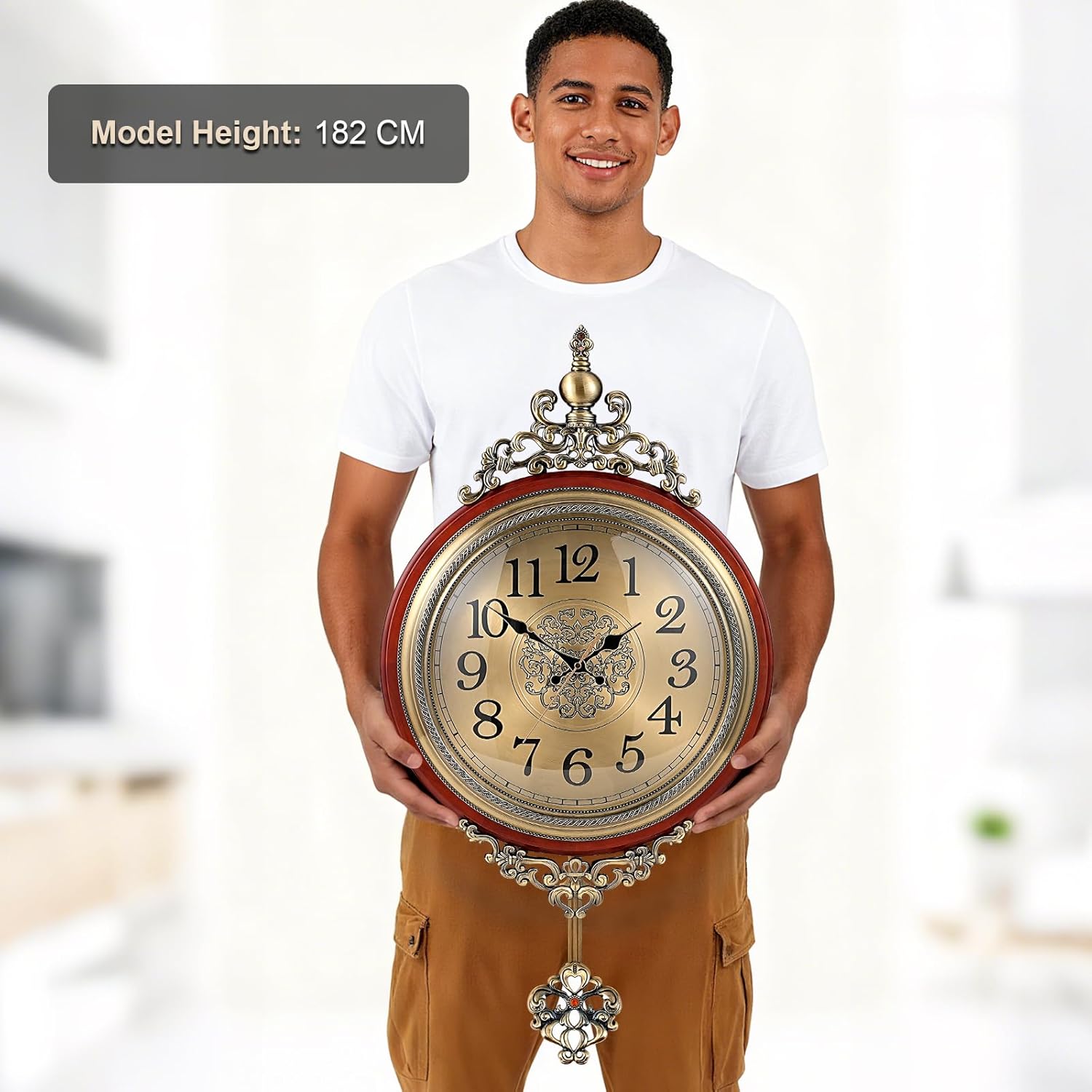 - 📏 [Large, Easy-to-Read & Statement Size] Designed for both style and function. The large 16-inch dial features bold Arabic numerals, making it easy to tell the time from anywhere in the room. Its substantial size (31.5" H x 16" W) makes it a perfect wall clocks for living room, creating a stunning focal point.