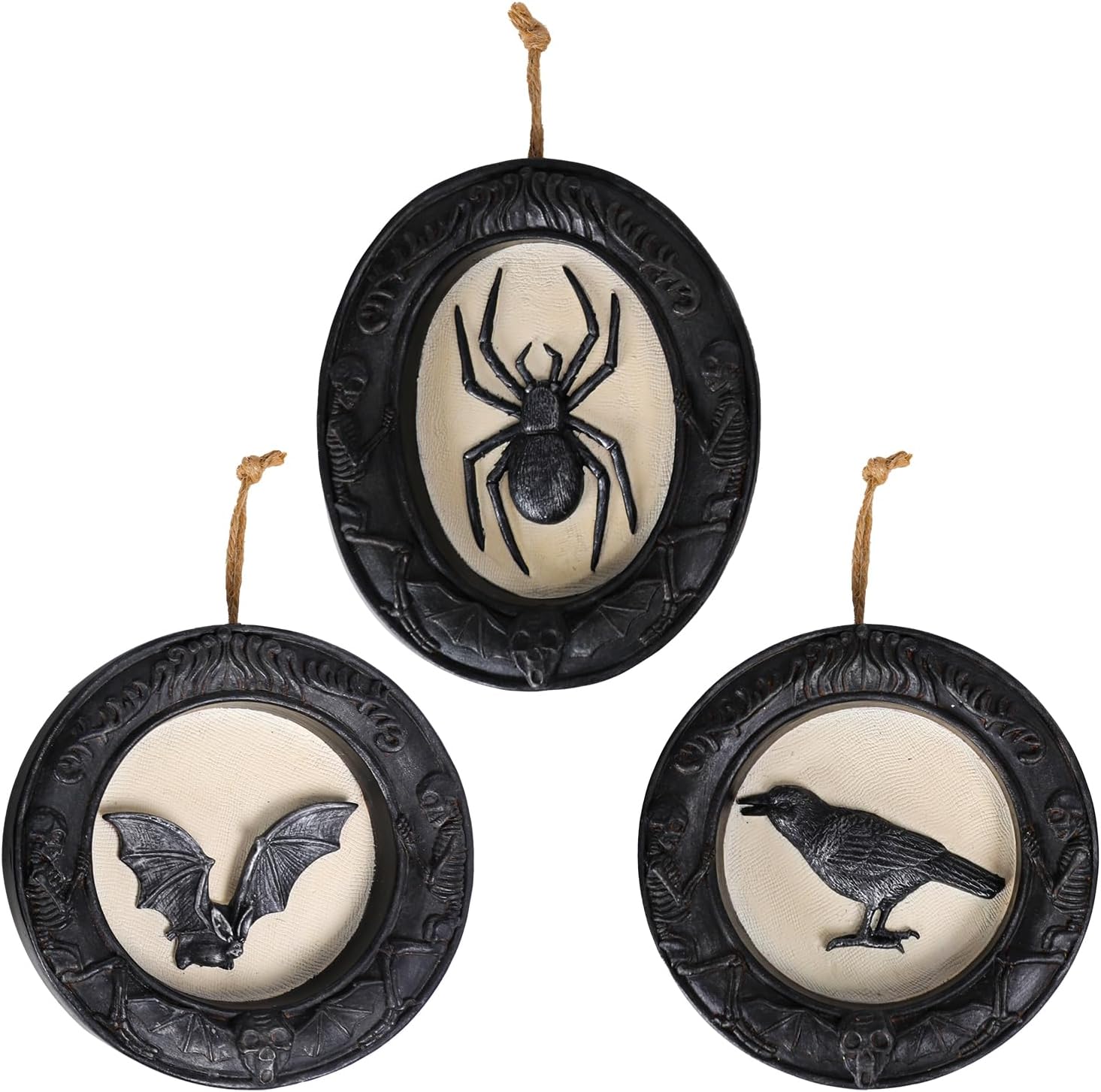 - 【Magical Halloween Wall Hanging Decorations】 Elevate your Halloween decorations with this set of 3 sophisticated Gothic-inspired hanging wall decoration. These Halloween wall sculptures design with spider, crow, bat pattern. Creating a memorable holiday atmosphere in your home with this spooky and eerie decorations