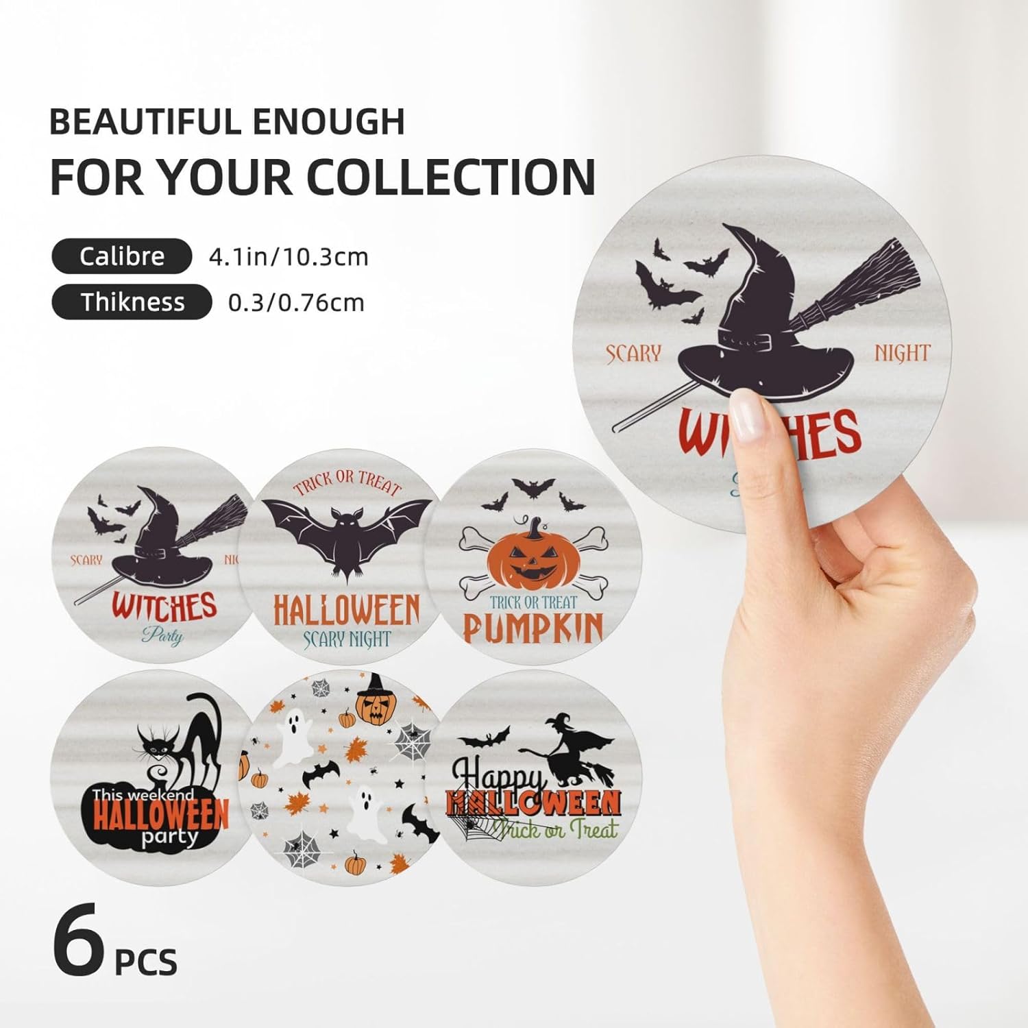 - SIZE - 4 Inches in Diameter. Package Includes 6PCS Coasters. Easy to clean: just wipe the surface.