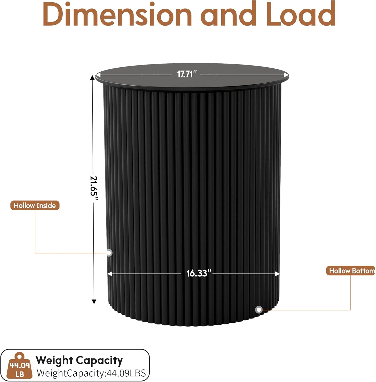 AVZEAR Fluted Round Side Table Small Mid Century End Table, 17.7" Fluted Nightstands Modern Circle Bedside Tables, Black Wood Night Stand for Small Spaces, Living Room, Bedroom (Black)