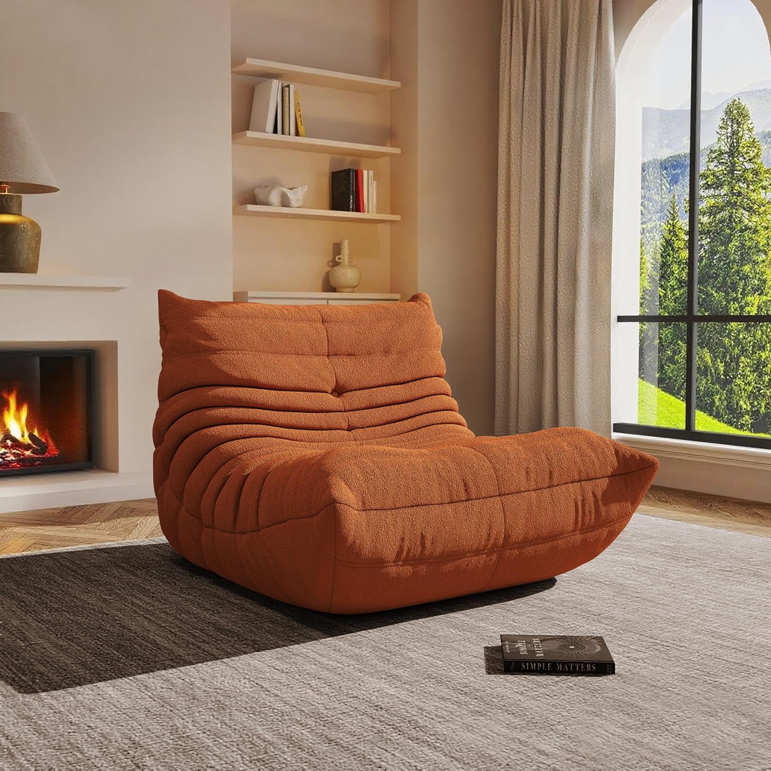 Bean Bag Chair, Oversized Bean Bag Chair for Living Room, Fireside Chair for Adults with Memory Foam Filled, Big Accent Sofa Lounge Floor Sofa for Gaming, Reading, Relax, No Assembly Required(Orange)
