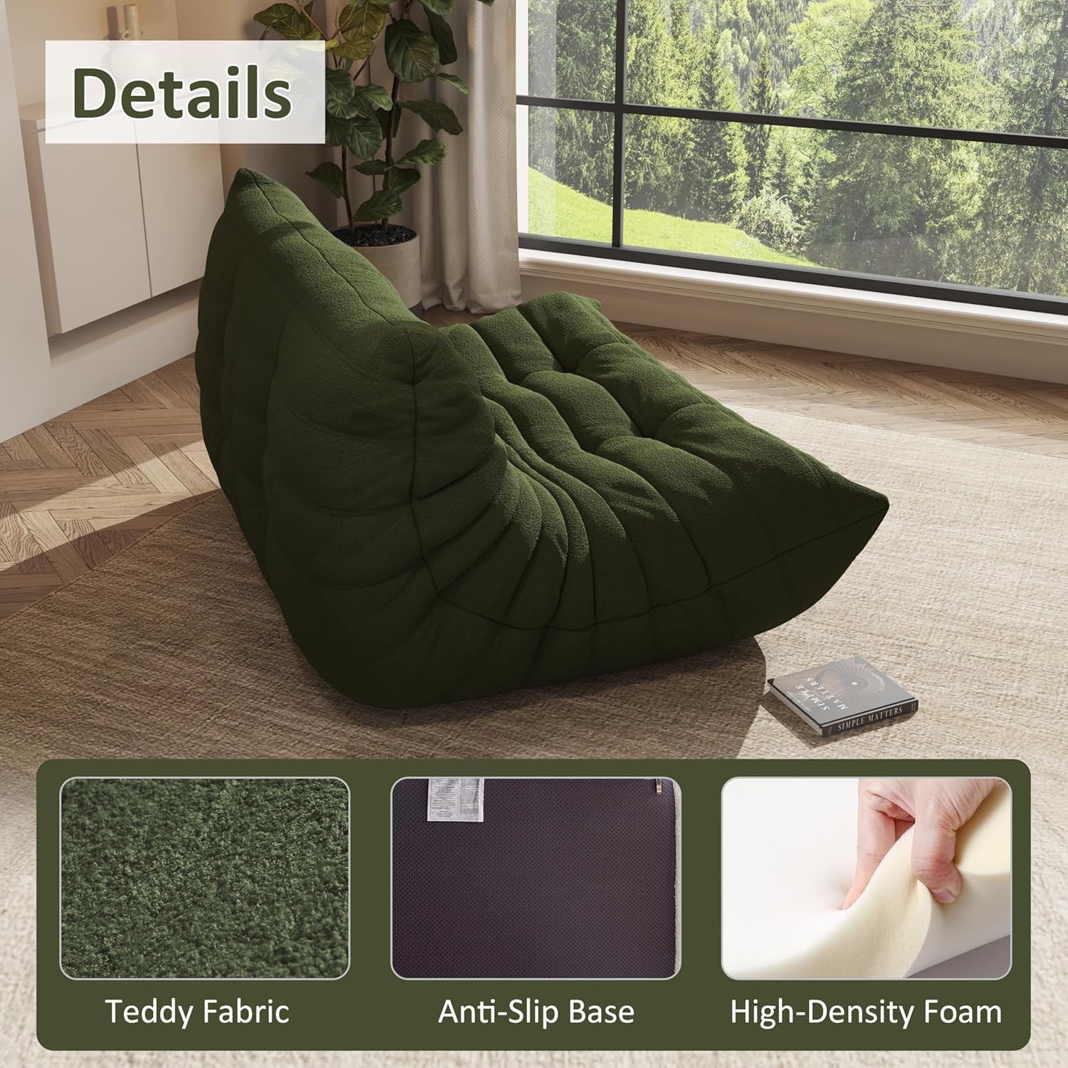 Bean Bag Chair, Oversized Loveseat Fireside Chair for Adults, 2 Seater with Memory Foam Filled, Lazy Sofa Lounge Floor Sofa for Living Room, Bedroom, Office, No Assembly Required. (Green)
