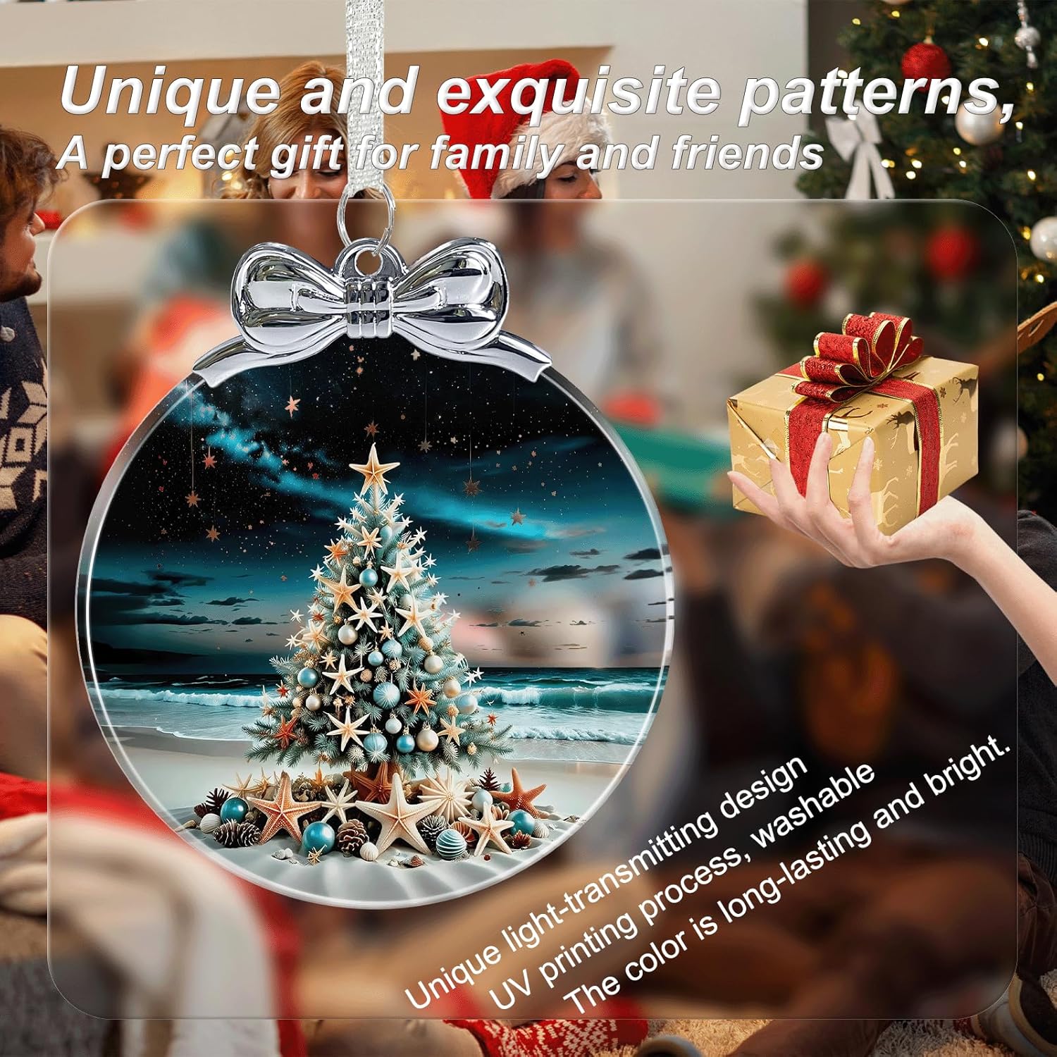 Seaside Christmas Tree Stained Glass Christmas Ornament - Hanging Ornaments for Christmas Tree Decorations - Holiday Keepsake Present Exchange Idea