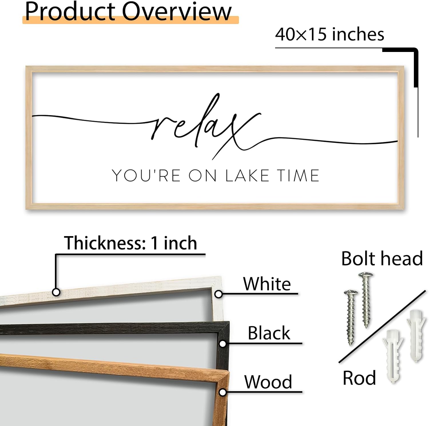 SRSZHIYUE Relax You're On Lake Time Wall Decor Above Bed Sign 40"×15" for Lake House Bedroom Over Bed Large Wood Framed Hanging Art (Wood)