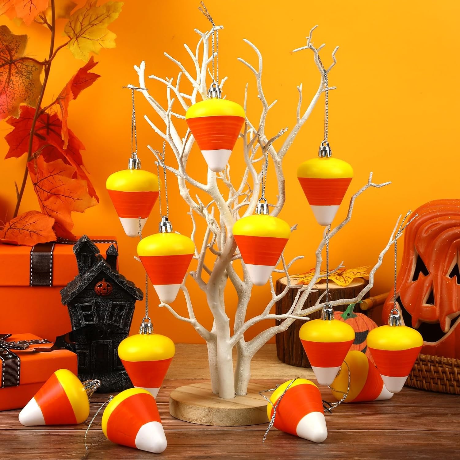 • Easy to Hang: Every candy corn hanging decoration has a rope at the top, which is easy to hang. You can easily hang these candy corn ornaments on branches, windows, wall, door handles or anywhere else you like, adding a touch of elegance and charm