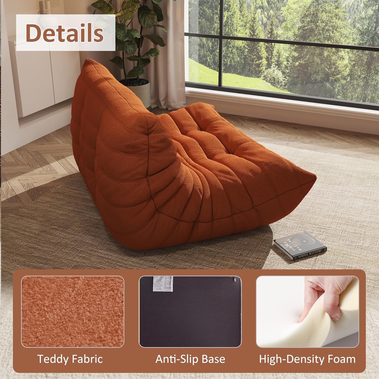 - 【Premium Teddy Velvet Fabric】: Our bean bag chair is crafted from breathable 100% polyester teddy velvet fabric, providing skin-friendly, softness, fashionable, offers a soft and luxurious feel. The fireside chair fabric is thick, durable and long-lasting.