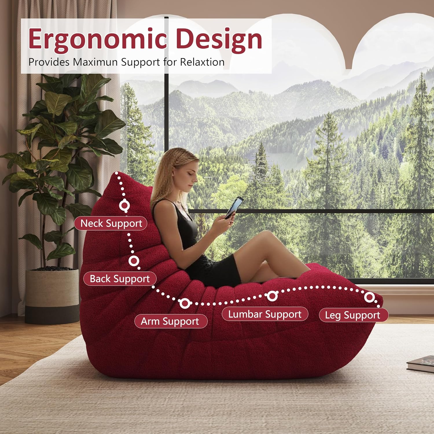 Bean Bag Chair, Oversized Bean Bag Chair for Living Room, Fireside Chair for Adults with Memory Foam Filled, Big Accent Sofa Lounge Floor Sofa for Gaming, Reading, No Assembly Required. (Burgundy)