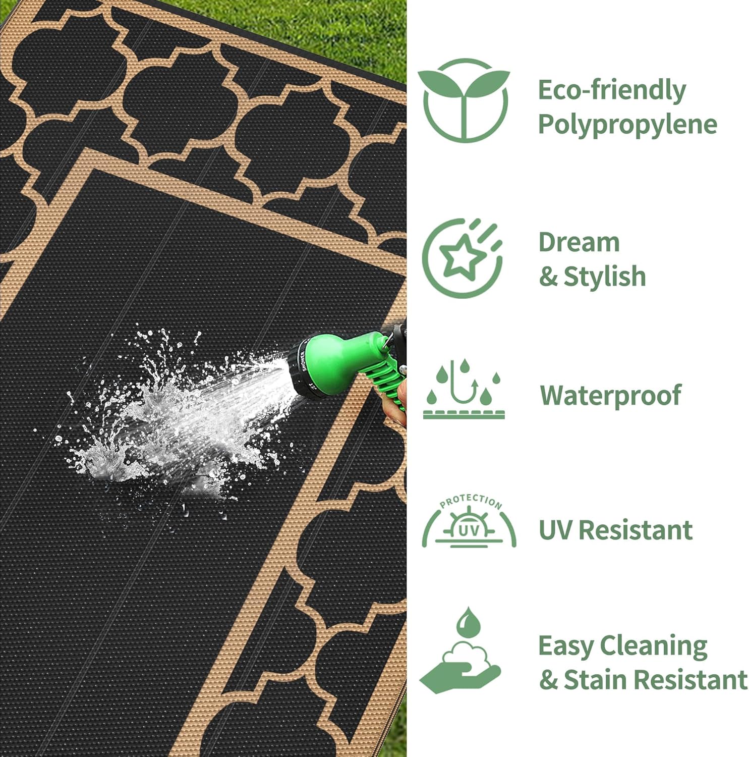 - Multiple Scenarios & Options: At GENIMO, we prioritize quality and innovation. Our upgraded recyclable polypropylene material offers unrivaled breathability and quick drying, and it is waterproof, surpassing the limitations of polyester. With multiple sizes available, the possibilities for creating your dream outdoor haven are limitless. Let GENIMO elevate your outdoor experience to a whole new level-especially if you're curating your must-have RV essentials