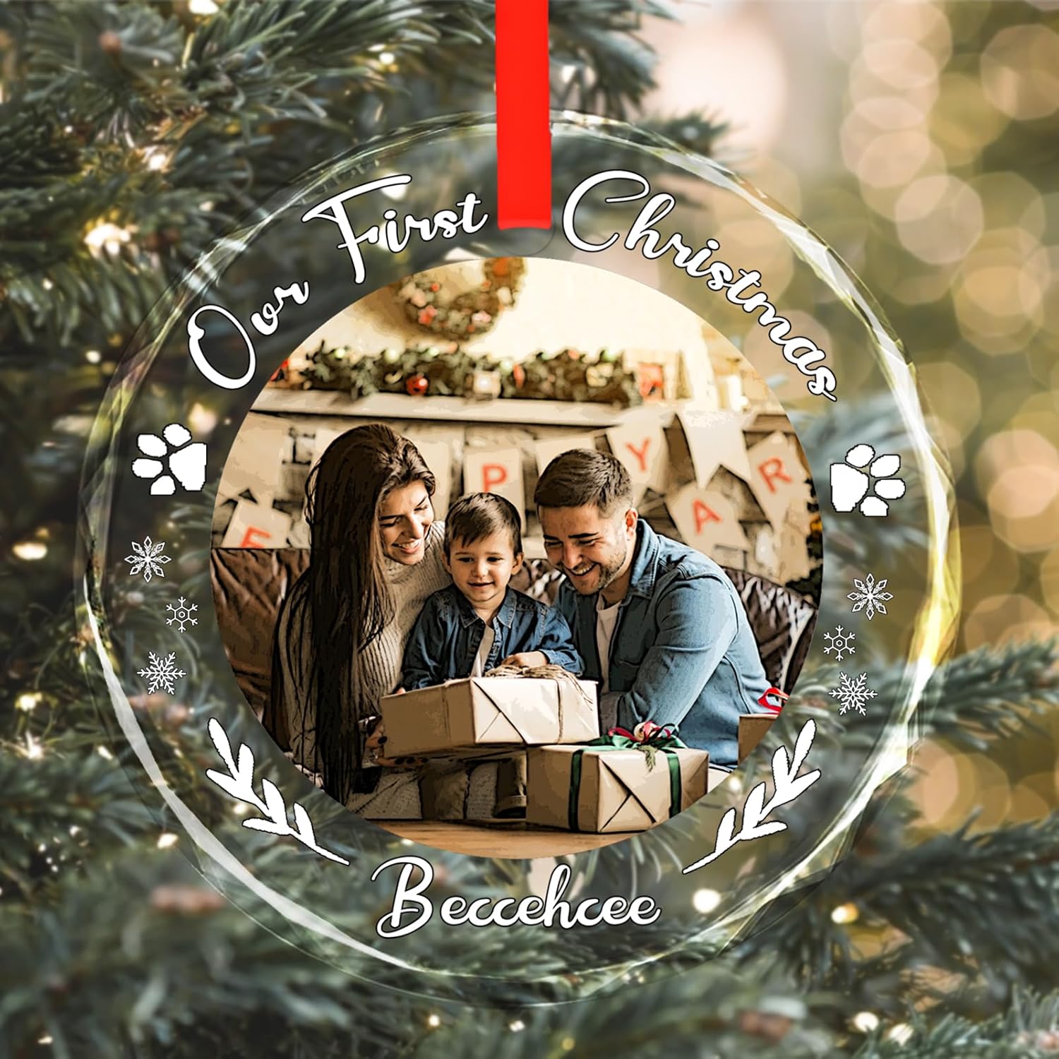 - Versatile Personalized Keepsake --- Beyond Christmas, this custom ornament is also perfect for weddings, anniversaries, or any special occasion. Each piece includes a 0.5cm-wide red ribbon (approx. 25cm long) for easy hanging in any setting.