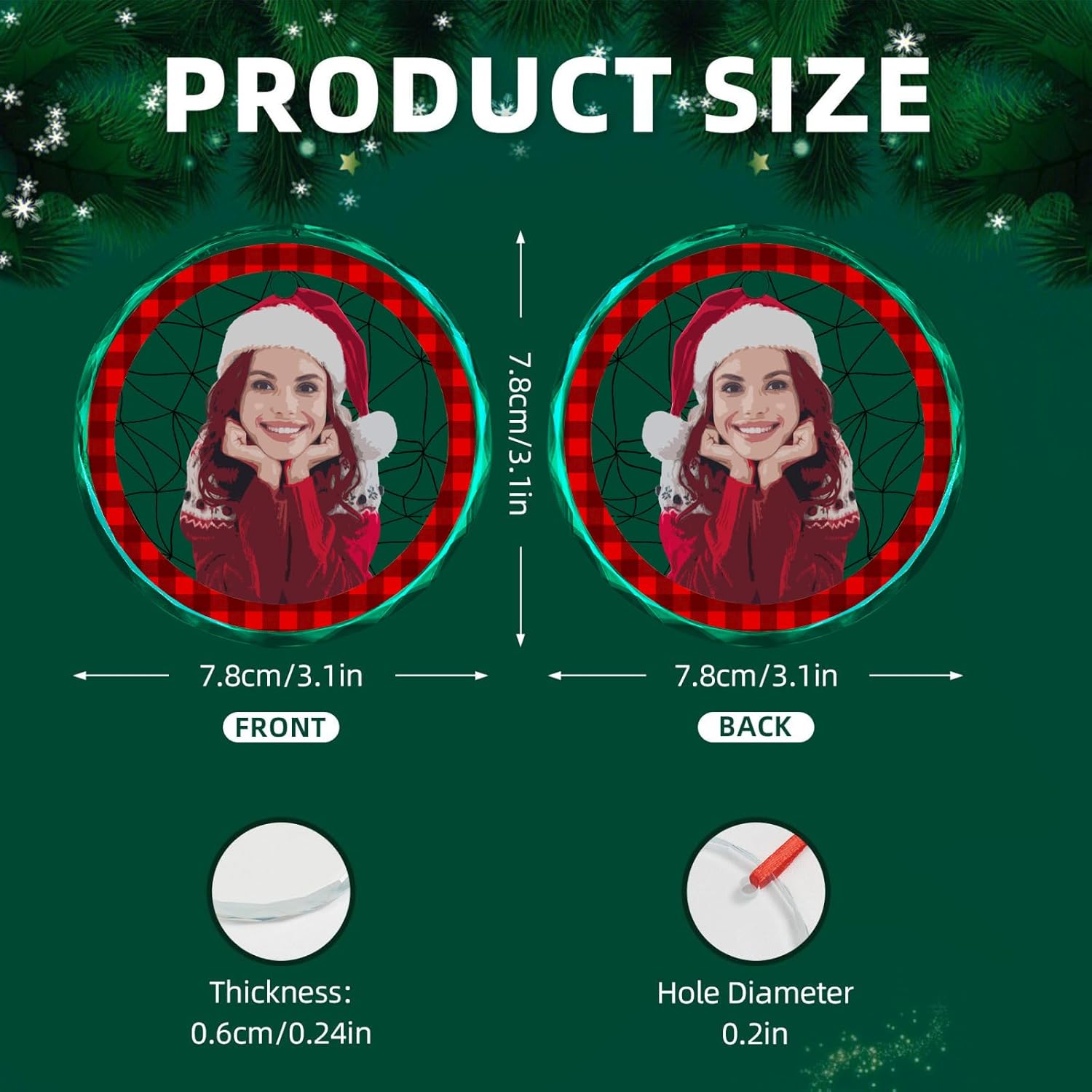 • Eye-Catching Custom Christmas Glass Ornament --- Delicate Christmas elements like trees, wreaths, snowflakes, and plaid patterns, combined with your photo, make this glass keepsake both festive and sentimental—perfect for the holiday season.